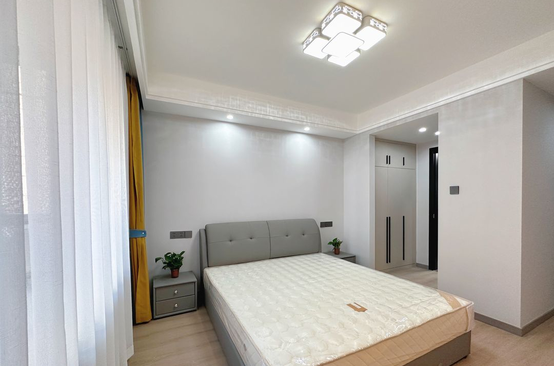 设计理念:设计师将阳台与客厅打通,增加客厅的采光面积,延伸视觉空间。卧室主打温馨氛围,采用隔音材质,能够有效保证业主的睡眠质量。